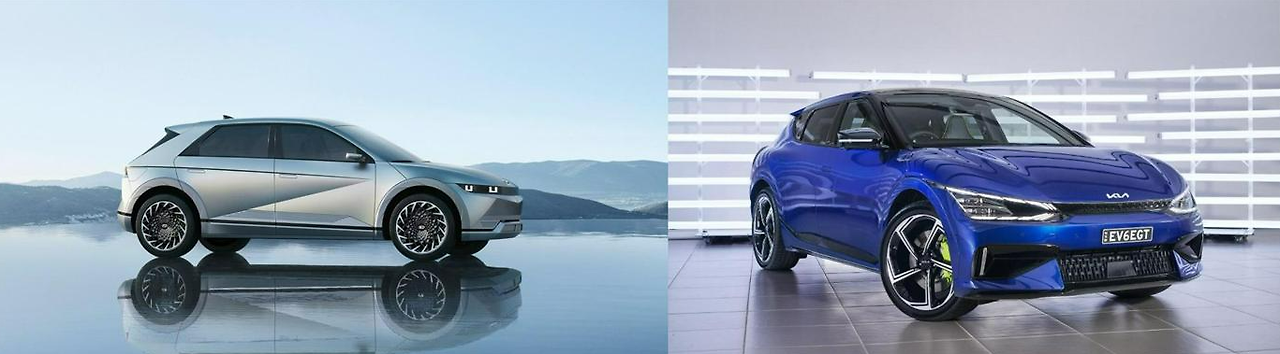 <2025년형 기아 EV6와 현대 아이오닉 5의 실차 디자인 비교 이미지>