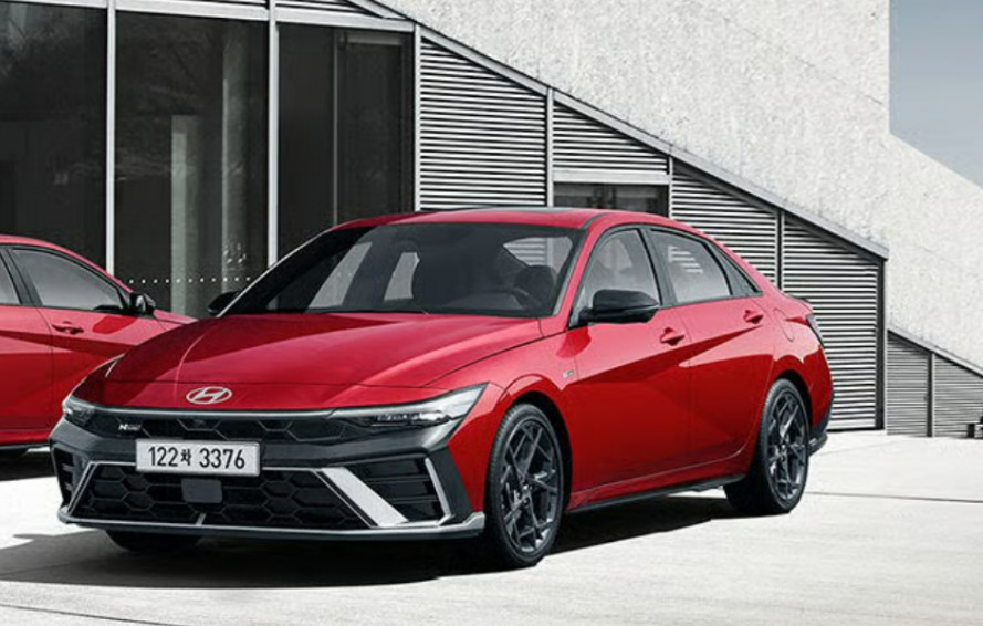 2026 아반떼 N 라인 하이브리드 레드 모델 전면 측면 디자인